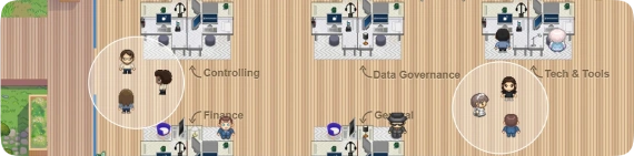 هنگامی که آواتارها به یکدیگر نزدیک شوند، سیستم بهطور خودکار امکان برقراری تماس صوتی، تصویری و گفتوگوی متنی را فعال میکند؛ مشابه ارتباط در دفتر واقعی.